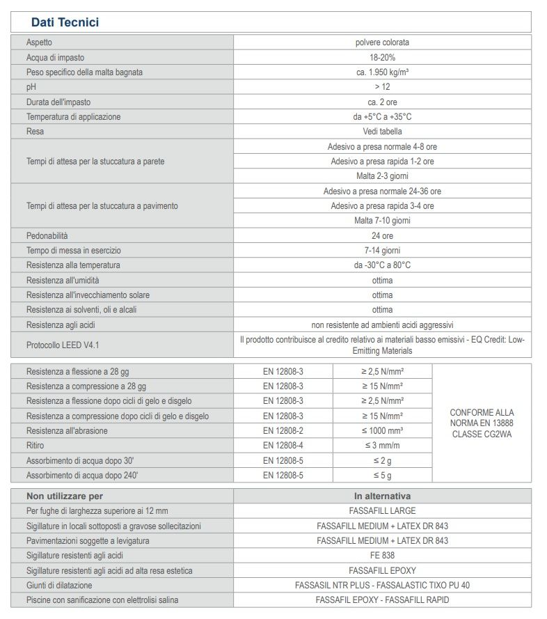 - Non utilizzare FASSAFILL MEDIUM come giunto di dilatazione o di frazionamento, anche quando impastato con il lattice LATEX DR 843.