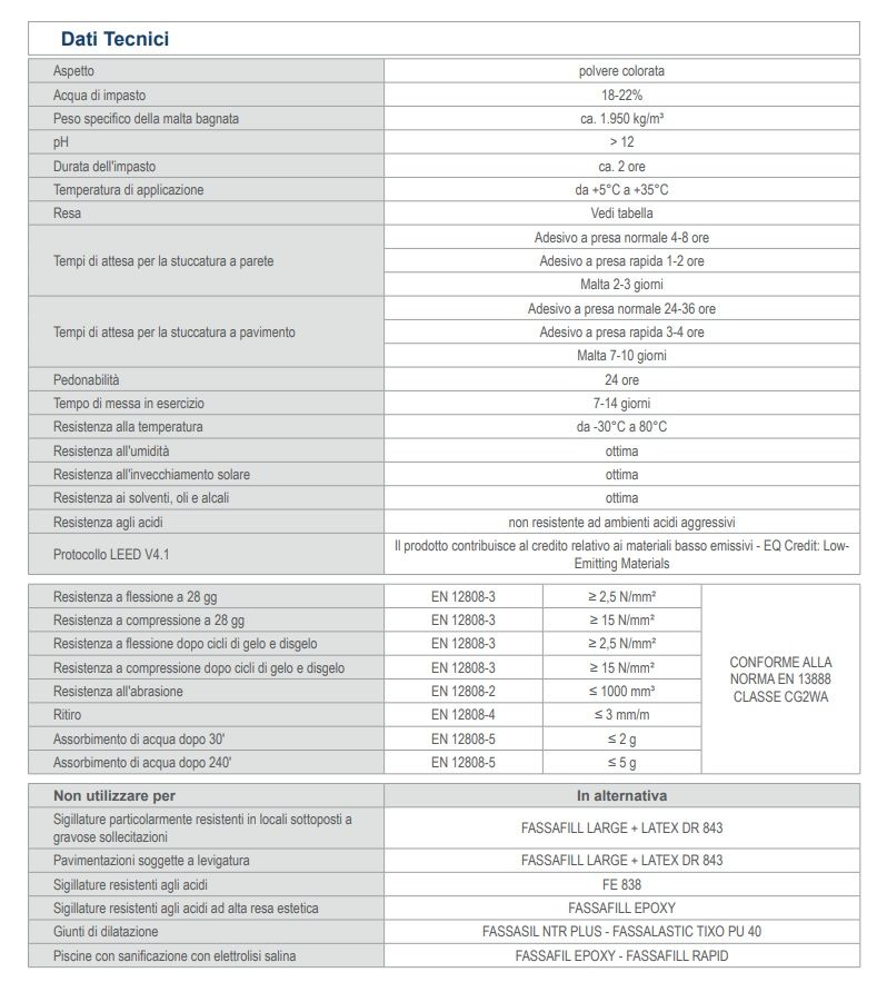 - Non usare FASSAFILL LARGE su sottofondi umidi o soggetti a risalite di umidità.