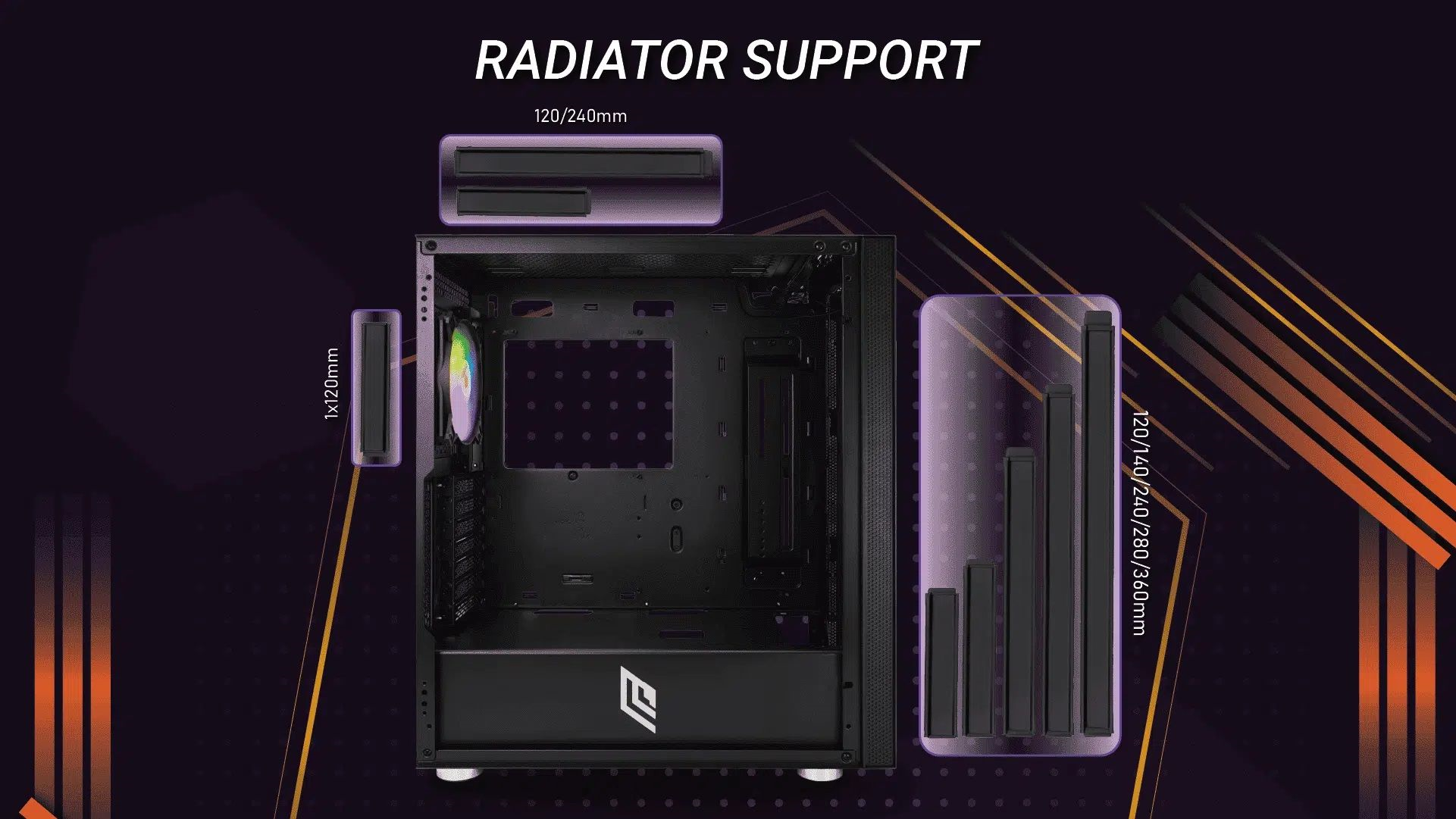 Radiator Support: Front 120/140/240/280/360 mm| Rear 120mm