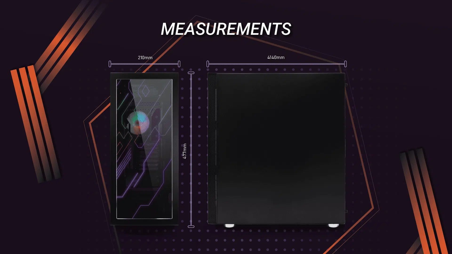 Dimensioni chassis: 380mm (L) x 210mm (W) x 465mm (H)