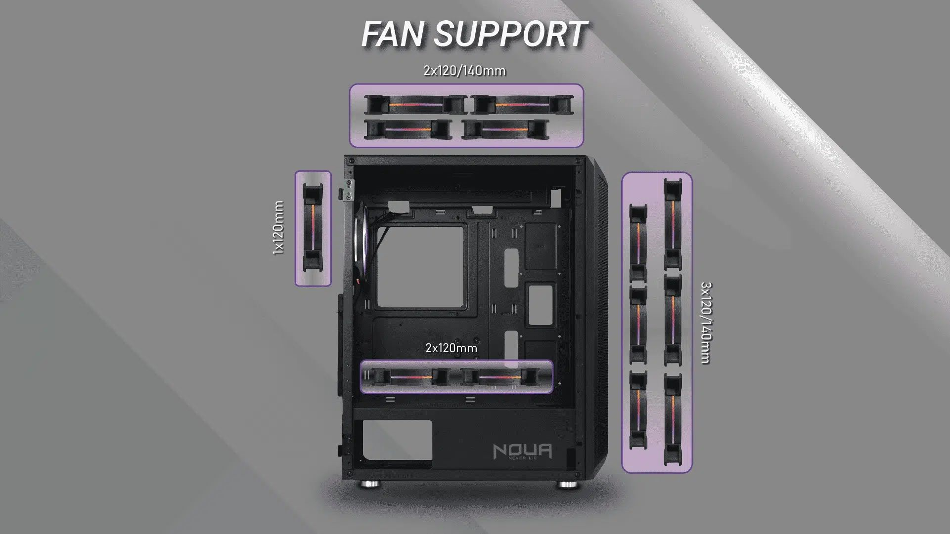 Fan Support: Front 3*120 mm | Rear 1*120 mm | Top 2*120 mm