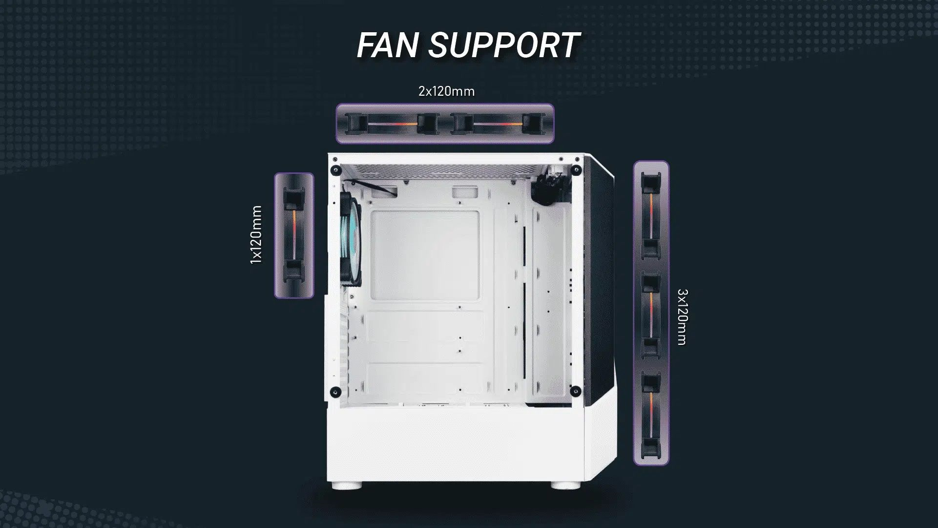 Fan Support: Front 3*120 mm | Rear 1*120 mm | Top 2*120 mm