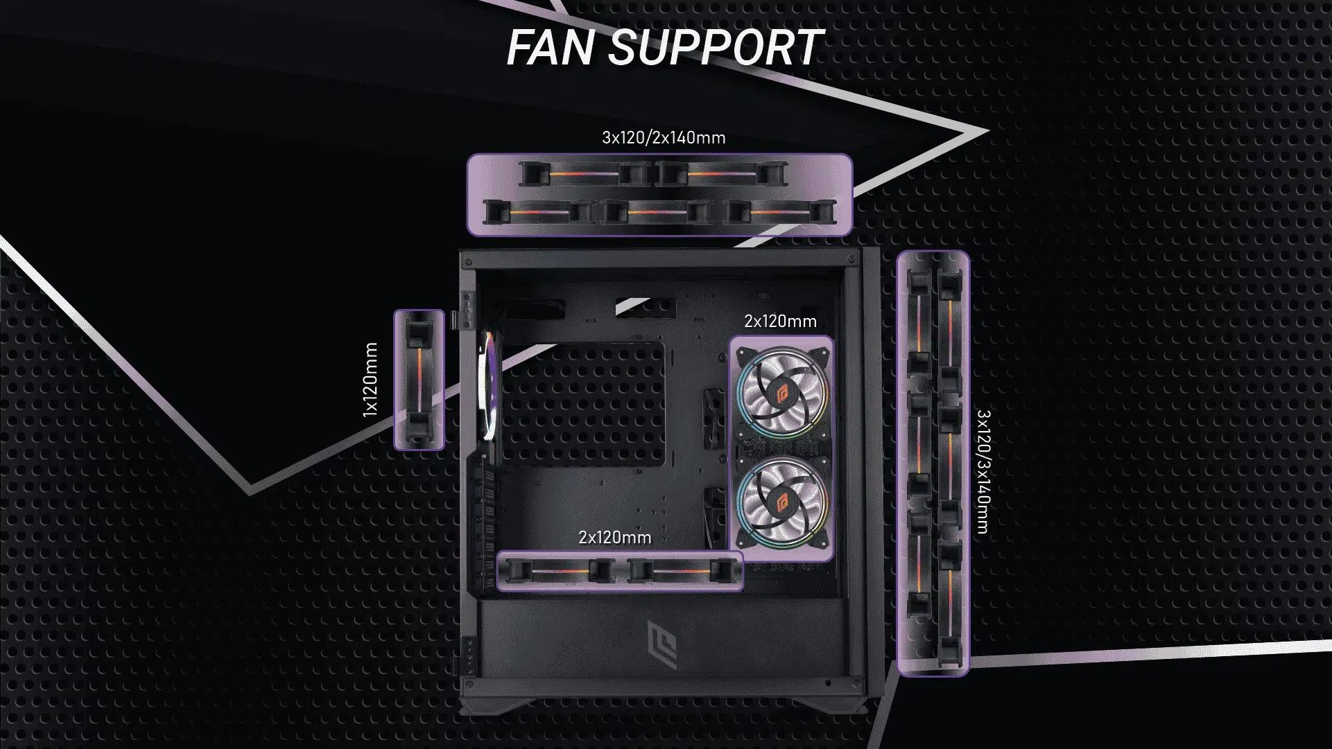 Fan Support: Top 3*120/3*140 mm | Front 3*120/2*140 mm