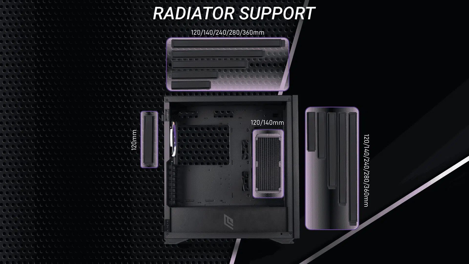 Radiator Support: Top 120/140/240/280/360 mm | Rear 120 mm