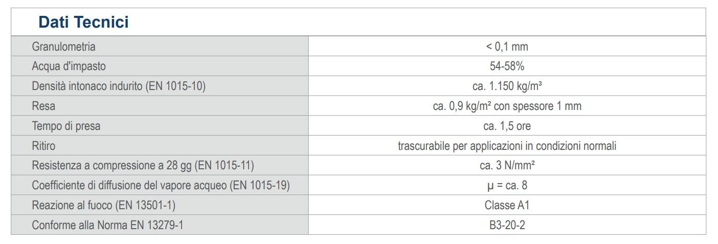 La malta, dopo la miscelazione con acqua, deve essere applicata entro 1 ora. L'inizio dell'indurimento dipende dalle condizioni ambientali e dal potere assorbente del sottofondo.