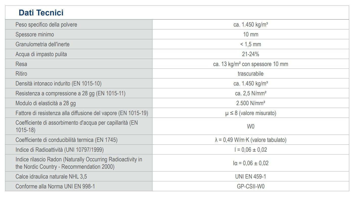 Bio-intonaco di fondo a base di calce idraulica naturale NHL 3,5 per interni ed esterni