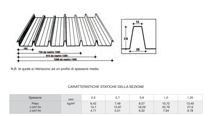 Spessore mm. 0,5 ÷ 1,25 Pendenza minima 8%