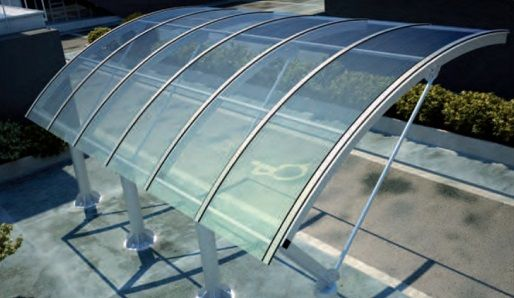 Il policarbonato si presta ottimamente alla realizzazione di strutture integrali ad arco (tipo serra a tunnel) ove la struttura alveolare aumenta la rigidità della lastra curvata longitudinalmente alle nervature.
