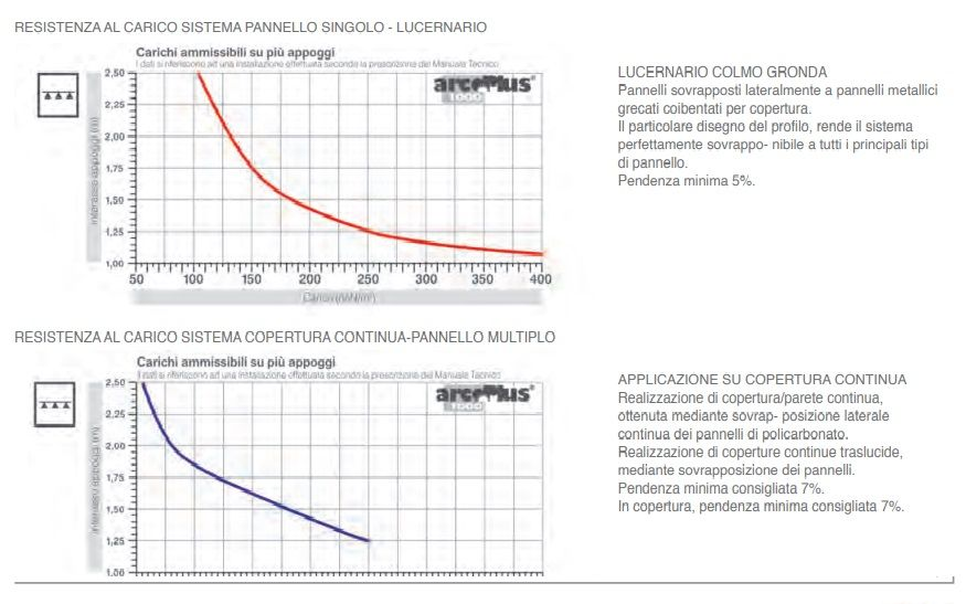 ArcoPlus1000 è un sistema modulare grecato , composto da pannelli di policarbonato alveolare coestryso a tre pareti , con spessore variabile 8-12 mm , perfettamente sovrapponibile longitudinalmente e consente di ottenere sia coperture continue e sia lucernari colno gronda.
