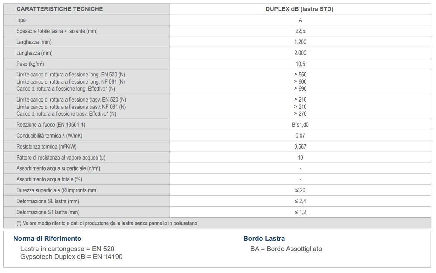 Lastra speciale in cartongesso ( Tipo A secondo EN 520 ) sul cui retro è stato incollato un pannello di poliuretano riciclato sp. 10 mm rivestito su ambo i lati con un tessuto non tessuto, per realizzare soluzioni con minimi ingombri ed elevate prestazioni acustiche.