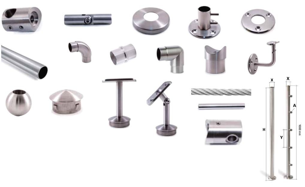 Tutto il necessario per costruire balaustre , ringhiere e corrimano in acciaio inox , per scale da interni ma anche per parti comuni , terrazzi e balconi.