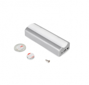 L'installazione nel cassetto è molto semplice, e l'apparecchio può essere rimosso per la ricarica. Può essere fissato tramite una base avvitata o con una piastra metallica con magnete (entrambi incluse) che viene fissata con del nastro biadesivo in modo da non forare il cassetto. Con questa lampada si evitano complicate installazioni elettriche nei cassetti o in luoghi in cui non si dispone di un impianto elettrico.