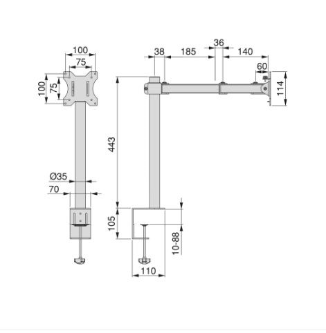 - Braccio per monitor estensibile con una lunghezza massima di 430 mm. Include passacavi per lasciare il cablaggio organizzato e nascosto.
