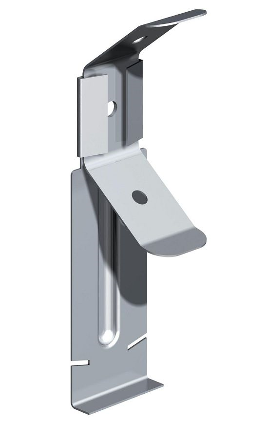 Prodotto realizzato in acciaio zincato utilizzato nelle controsoffittature per agganciare il profilo primario da controsoffitto (PROFILO A SCATTO) U/40/28/40 al quale viene fissato (a scatto) il profilo montante C/15/48/15 o C/27/48/27.