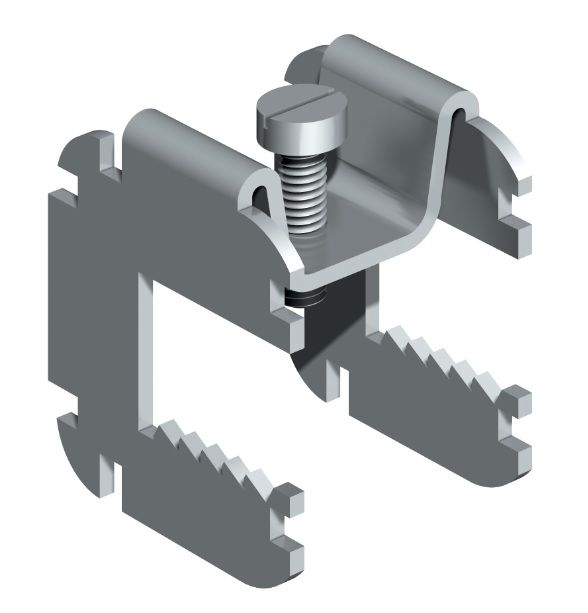 Il posizionamento dell'accessorio avviene per accoppiamento sull'ala della putrella tramite il bloccaggio della vite di fissaggio e la dentatura del prodotto.