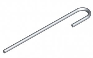 Tondino piega a "V" costituito da un filo di acciaio zincato a Norma UNI EN 10025 da utilizzarsi nella costruzione di controsoffitti. L'occhiello è piegato a "V", distanza 20 mm.