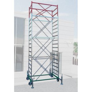 MODELLO M5750 : Altezza lavoro 8,30 m Altezza ingombro 7,50 m Altezza max piano 6,35 m Componenti: 1 Base con ruote 4 Alzate da 150 cm completa 1 Parapetto terminale 4 Aste stabilizzatrici