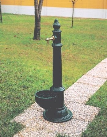 Fontana tipo “Tondo A" realizzata in fusione di ghisa. completa di basamento,bacinella e griglia, rubinetto intermittente contro il colpo d’ariete. Il trattamento di verniciatura, nei colori antracite o verde, è realizzato con apposito ciclo epossipoliuretanico atto a garantire la massima resistenza agli agenti atmosferici. Dotata di un secondo rubinetto in basso per l’allacciamento di tubo in gomma.