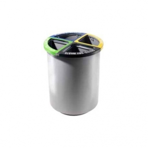 Cestino per la raccolta differenziata ideale per grandi strutture come aeroporti, centri commerciali, ecc… Struttura cilindrica esterna composta in lamiera d’acciaio forata o liscia calandrata sp.2 mm con fondo in lamiera d’acciaio sp.3mm che poggia su una base circolare in piatto calandrato 50x5 mm. Il contenitore è diviso internamente in 4 settori tramite pannelli in lamiera d’acciaio sp.15/10 saldati ad un sostegno centrale in tubo D.30 mm, ciascuna sezione è completa di reggi - sacco in trafilato d’acciaio sp.6 mm. Il coperchio apribile in lamiera sp.20/10 tagliata al laser e ribordata mediante tornitura viene finito con trattamenti di zincatura e verniciatura a liquido in 4 colori e scritta identificativa secondo la divisione per la raccolta differenziata. Tutta la viteria è in acciaio inox. Non avendo coperchio di chiusura è preferibile l’uso in ambienti interni o protetti. Su richiesta può essere predisposto per il fissaggio al suolo.