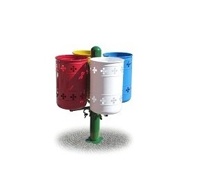 QUATTRO CESTINI RACCOLTA DIFFRENZIATA IN ACCIAIO ZINCATO E VERNICIATO