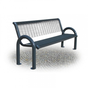 Panchina composta da 2 supporti in tubo tondo di acciaio zincato diam.60mm piegati ad “U” capovolta e dotati di piastre per l’ancoraggio al suolo. Seduta e schienale composti da due moduli in grigliato con maglia sezione mm 15x76. Il prodotto viene zincato a caldo e verniciato con ciclo di verniciatura a polveri elettrostatiche termoindurenti in colore RAL a scelta.