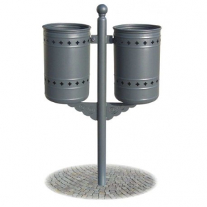 Doppio cestello realizzato in lamiera sagomata d’acciaio zincato sp. 10/10 dimensioni cm 30 x 51. Fondo del cestello realizzato mediante disco di lamiera stampato sp. 15/10 con fori per lo scolo delle acque piovane.