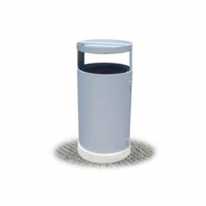 Struttura: Cestone realizzato in lamiera d’acciaio zincato 10/10. Provvisto di sistema di apertura frontale con chiave triangolare universale fornita in dotazione, per una facile asportazione dei rifiuti. Base in calcestruzzo bianco sabbiato. Tettuccio / Posacenere realizzato con disco in lamiera e corona in tubolare d’acciaio zincato sostenuto da n. 2 fregi in lamiera sagomati con tecnologia laser con possibilità di personalizzazione. Dotato internamente di anello reggi-saccoFinitura: Le parti in acciaio zincato subiscono dapprima processo di pre-trattamento di sgrassaggio delle impurità attraverso soluzioni a vapori, successivamente asciugate e sottoposte a operazioni di verniciatura mediante pistole elettrostatiche che ricoprono i pezzi di vernice di polvere allo stato farinoso. Successivamente il manufatto è sottoposto a polimerizzazione in forno, ovvero, processo che permette alla polvere di solidificarsi cocendo ad una temperatura di 180/200° C in un forno a circolazione di aria calda. I pezzi usciti dal forno vengono raffreddati naturalmente. Le polveri utilizzate nel processo di verniciatura sono atossiche secondo normative vigenti. Colorazione RAL a discrezione del cliente.Ferramenta e bulloneria: zincata a norma UNI 3740.Ancoraggio: filo al terreno. Ingombro: cm 50x50x100 h. Capacità Cestone: 120 litri ca.