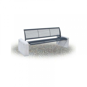 Panchina composta da due supporti in lamiera sagomata con tecnologia laser spessore 60/10. Seduta e schienale della lunghezza di cm 180 realizzati in profilati tondi d'acciaio diametro mm. 8 e tubolari terminali in acciaio zincato diametro mm. 40. Basi d'appoggio in calcestruzzo grigio armato, vibrato e trattato antidegrado.
