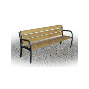 Panchina composta da n. 2 supporti realizzati in tubolare quadro d’acciaio zincato sez. mm. 40 x 40, braccioloe supporto frontale in tubo tondo d’acciaio zincato Ø mm. 40. Seduta e schienale composti da doghe in legno di pino nordico impregnato in autoclave mediante sali atossici. sez. mm. 110 x 45 x 1900. Le parti in acciaio zincato subiscono dapprima processo di pre-trattamento di sgrassaggio delle impurità attraverso soluzioni a vapori, successivamente asciugate e sottoposte a operazioni di verniciatura mediante pistole elettrostatiche che ricoprono i pezzi di vernice di polvere allo stato farinoso. Successivamente il manufatto è sottoposto a polimerizzazione in forno, ovvero, processo che permette alla polvere di solidificarsi cocendo ad una temperatura di 180/200° C in un forno a circolazione di aria calda. I pezzi usciti dal forno vengono raffreddati naturalmente. Le polveri utilizzate nel processo di verniciatura sono atossiche secondo normative vigenti. Colorazione RAL a discrezione del cliente.