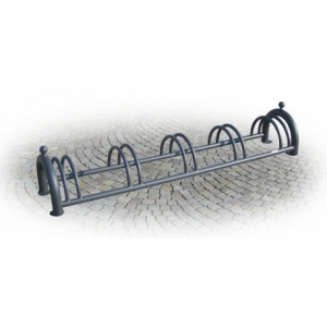 Portabiciclette realizzato per la struttura portante in tubo tondo d’acciaio Ø mm. 40 x 1,5 ed elementi di parcheggio biciclette in tubo tondo d’acciaio Ø mm. 25 x 1.5.