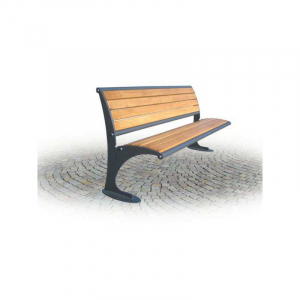 Panchina composta da n. 2 supporti in lamiera sagomata con tecnologia laser. Seduta e schienale realizzati mediante doghe in pino nordico impregnato in autoclave e mordenzato noce della sezione di mm. 70 x 30 x 1500. Tubolari terminali in acciaio zincato diametro mm. 40.