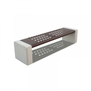 Seduta con fori passanti realizzata in acciaio zincato e verniciato color cor-ten.