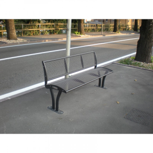 Panchina realizzata con due robuste spalle laterali in acciaio sp. 8 mm, ricavate da lastra di acciaio con tecnologia laser. Alle spalle vengono saldati due tubolari in acciaio a sezione ovale 60x30x1,5 mm, opportunamente sagomati, con funzione di sostegno e una piastra base sp. 6 mm idonea per il fissaggio al suolo. La seduta e lo schienale sono realizzati da trafilato di acciaio diam. 8 mm saldato a due flange laterali sp. 6 mm. Per irrigidire la struttura all’estremità della seduta e dello schienale vengono saldati due tubolari d’acciaio diam. 30x1,5 mm. Tutte le parti metalliche sono zincate a caldo secondo e verniciate a polveri secondo le diverse tinte RAL.