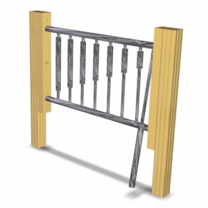 Realizzato con 2 montanti in lamellare di pino nordico sez. 90x90 mm con bordi raggiati minimo raggio 3 e speciale doppia fresatura su ciascun lato atta a convogliare le naturali fessurazioni del legno eliminando qualunque rischio di scheggiatura, impregnati a pressione in autoclave in conformità alle norme DIN 68800 e RAL e 2 barre in acciaio inox alle quali sono ancorati, per mezzo di catenelle in acciaio zincato a caldo, 7 tubi diam. 33 mm di varia lunghezza, anch’essi in acciaio inox.