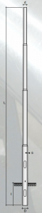 Palo rastremato saldato diritto in acciaio S235 JRH UNI EN 10219 , saldati ad alta frequenza E.R.W. , imbustiti (rastremati) ed uniti tra di loro mediante saldatura circonferenziale in corrispondenza delle rastremature.