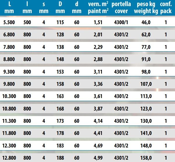 A richiesta possono essere prodotti pali con lunghezze e diametri diversi da quelli indicati