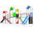 Castello completo di scivoli con pista in acciaio inox e fianchi in polietilene alta densità PEHD, montanti in tubolare d’acciaio 80x80 mm zincato e verniciato polveri ; tamponamenti, tetti e pannelli in polietilene alta densità PEHD, ponte tibetano con funi Hercules, arrampicate con piani in polietilene e prese d’arrampicata in resina, ponte tunnel a doppia parete in polipropilene.
