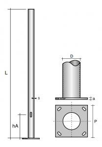PALO CILINDRICO CON PIASTRA DI BASE PER ARREDO URBANO VARIE MISURE