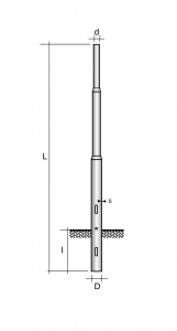 Palo rastremato saldato in acciaio S235 JRH UNI EN 10219 , zincato a caldo secondo UNI EN ISO 1461, verniciato colore peltro bugnato.