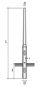 Palo rastremato conico laminato a caldo in acciaio S275 JRH UNI EN 10219 , zincato a caldo secondo UNI EN ISO 1461, verniciato colore peltro bugnato.