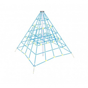 Piramide d’arrampicata statico in corda costituita da funi intrecciate che formano una struttura tridimensionale. Le funi utilizzate sono del tipo Hercules costituite da 4 funi in acciaio rivestite in poliammide alta resistenza. Le parti strutturali, il pilone e gli anelli di tensionamento sono realizzati in acciaio zincato.