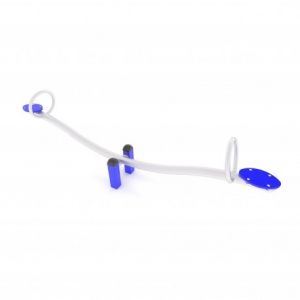 Classico gioco per parchi dondolo a bilico con struttura in tubolare di acciaio zincato e verniciato, seggiolini in polietilene alta densità – elementi in gomma posizionati sotto la struttura per ammortizzare l’urto a terra