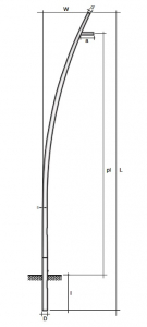 PALO CONICO CURVATO SINGOLO LAMINATO A CALDO HSP PER ARREDO URBANO VARIE MISURE