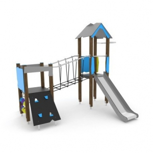 Castello doppia torre con scivolo pista in acciaio inox e arrampicate.