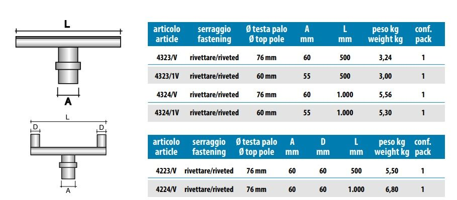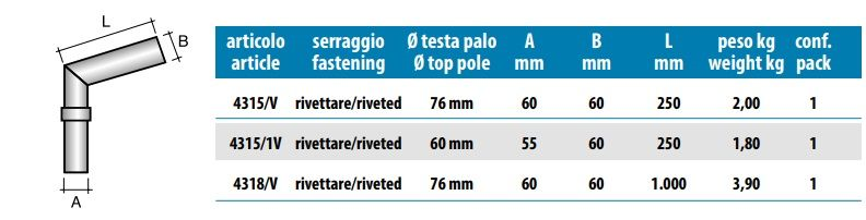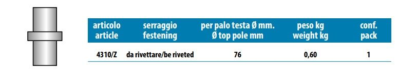 ACCESSORI PER PALO PER ILLUMINAZIONE CONICO IN VETRORESINA VARIE MISURENB: Prodotti certificati per uso pubblicoCODOLO DI RIDUZIONEIn acciaio S235 JRH , zincato a caldo secondo UNI EN ISO 1461TESTA PALO SINGOLO 15°In acciaio S235 JRH , zincato a caldo secondo UNI EN ISO 1461TESTA PALO DOPPIO 15°In acciaio S235 JRH , zincato a caldo secondo UNI EN ISO 1461TESTA PALO TRIPLO 15°In acciaio S235 JRH , zincato a caldo secondo UNI EN ISO 1461TRAVERSAIn acciaio S235 JRH , zincato a caldo secondo UNI EN ISO 1461