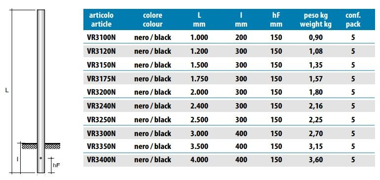 Palo cilindrico diametro 60 mm in acciaio S235 JRH , zincato a caldo seconod UNI EN ISO 1461.