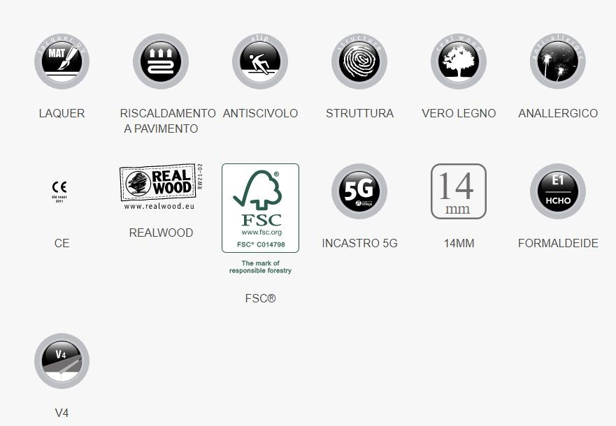 Caratteristiche tecniche: Supporto : Pino silvestro con strato superiore nobile da 2,5 mm in rovere