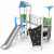 Castello tre torri completo di scivolo con pista in acciaio inox e fianchi in polietilene.