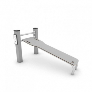 Composizione per esercizi ginnici all’aperto con struttura portante in pali da cm 10x10 in acciaio zincato verniciato con tappi di chiusura in plastica, barre orizzontali e maniglie in acciaio inox; pannelli, sedili e piani in HPL, targhetta con istruzioni per gli esercizi. L’ancoraggio va effettuato su superficie piana a 80 cm di profondità. Attrezzi a norma EN 16630:2015