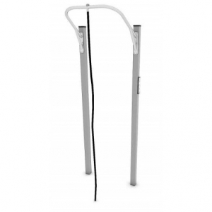 Composizione per esercizi ginnici all’aperto con struttura portante in pali da cm 10x10 in acciaio zincato verniciato con tappi di chiusura in plastica, barre orizzontali e maniglie in acciaio inox; pannelli, sedili e piani in HPL, targhetta con istruzioni per gli esercizi. L’ancoraggio va effettuato su superficie piana a 80 cm di profondità. Attrezzi a norma EN 16630:2015